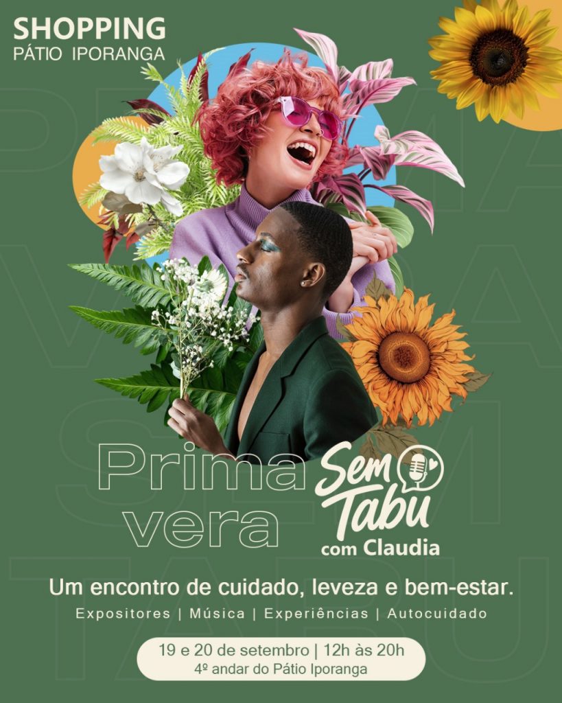 Nos dias 19 e 20 de setembro, o Pátio Iporanga recebe mais uma edição do Sem Tabu, desta vez celebrando a chegada da primavera. Organizado por Claudia Perez, o evento acontece no 4º piso, das 12h às 20h, com entrada gratuita. Um espaço de cuidado e acolhimento A proposta do Primavera Sem Tabu é criar […]